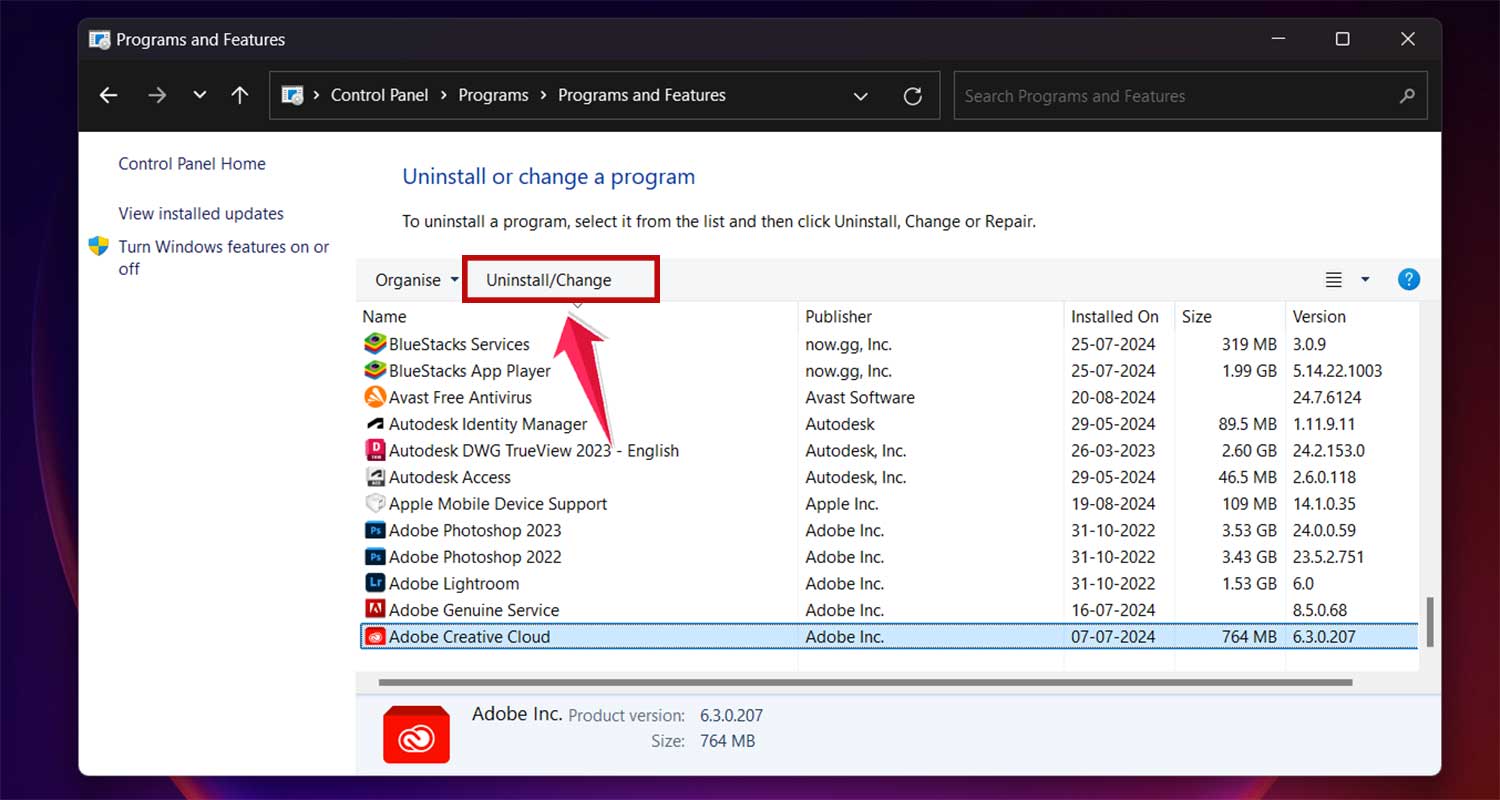 Photoshop. Illustrator. Premiere Pro. After Effects. Each app has its own .exe file.